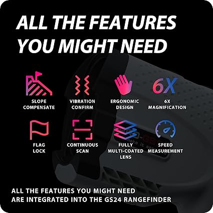 ⦁ Provide high-precision distance measurement. Integrates latest functions such as continuous range readings, ARC (angle range compensation), Pin-Seeking and Flagpole-Locking Vibration (Vibrate when the flagpole is locked), and Speed Measuring